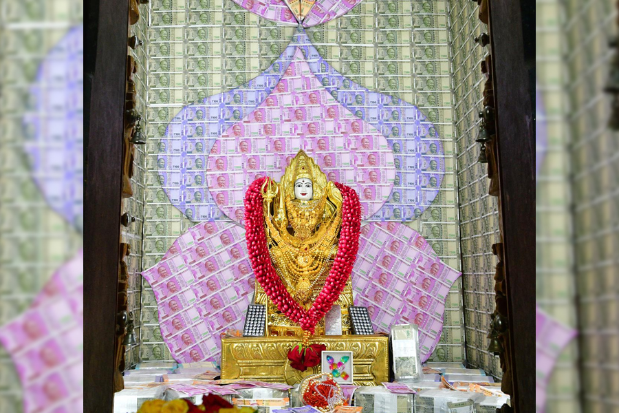 തമിഴ് പുതുവർഷം ആയതുകൊണ്ട് തന്നെ പണവും സ്വർണവും കണ്ടുണർന്നാൽ ഐശ്വര്യം വരുമെന്നാണ് ഭക്തരുടെ വിശ്വാസം. ഇതാണ് ദേവിയെ പൊന്നും പണവും കൊണ്ട് അലങ്കരിക്കാൻ ഭക്തരെ പ്രേരിപ്പിച്ചത്. ദേവിയുടെ ശരീരം മൊത്തം സ്വർണ്ണം കൊണ്ട് മൂടിയ നിലയിലാണ് ചിത്രങ്ങളിൽ കാണപ്പെടുന്നത്. പിന്നിലും അരികുകളിലുമെല്ലാം രണ്ടായിരത്തിന്റെയും അഞ്ഞൂറിന്റെയുമെല്ലാം നോട്ടുകൾ കൊണ്ട് അലങ്കരിച്ചിരിക്കുന്നു. ദേവിയെ ഈ രൂപത്തിൽ കാണുവാൻ അനവധി ഭക്തരാണ് ക്ഷേത്രത്തിലെത്തിയത്.