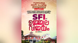 പൂക്കോട് വെറ്ററിനറി സർവകലാശാല കോളേജ് യൂണിയൻ തെരഞ്ഞെടുപ്പിൽ മുഴുവൻ സീറ്റിലും എസ് എഫ് ഐ വിജയിച്ചു. സർവ്വകലാശാല ക്യാമ്പസ്സിൽ ആകെയുള്ള....